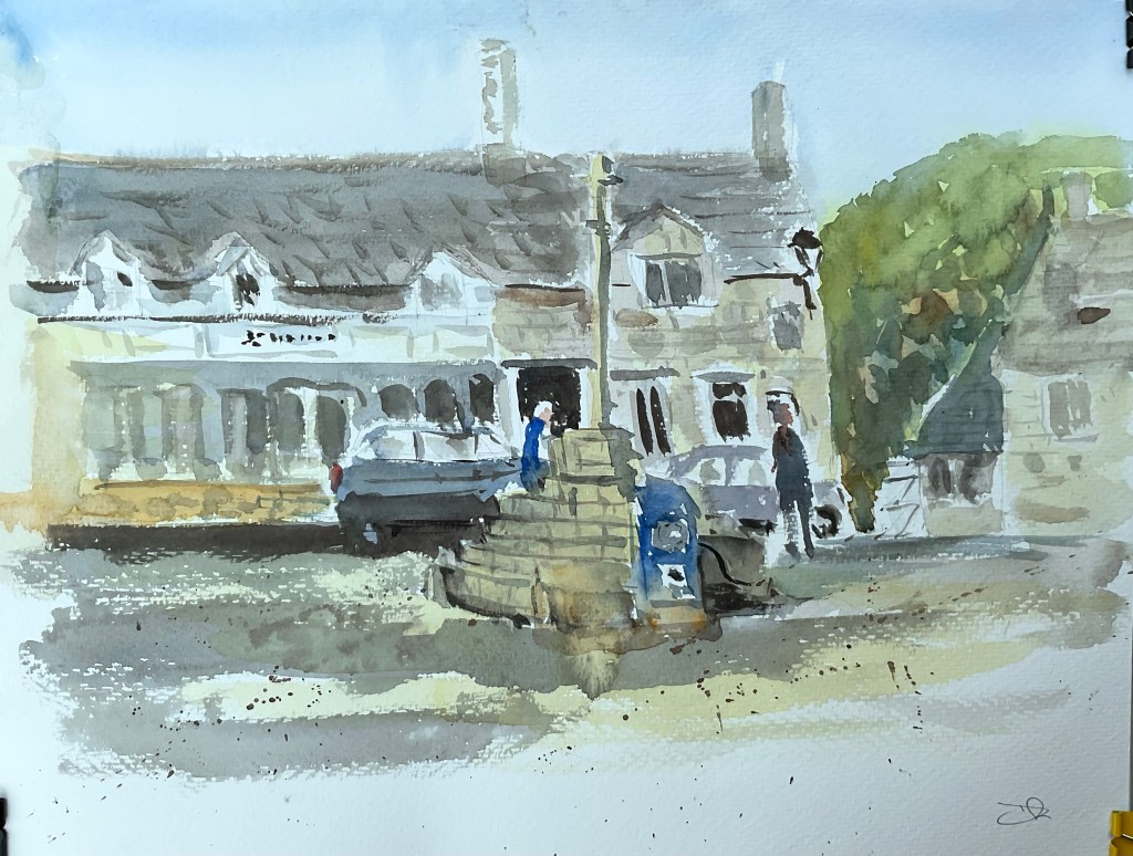 Painting at one of my favourite locations this morning Corfe Castle. This is the village square and the National Trust shop.