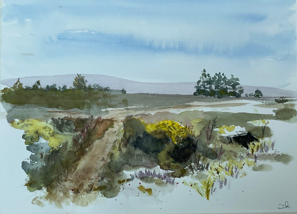 I visited RSPB Arne in Dorset this morning with the art group . It started overcast then turned into a lovely sunny day, it was wonderful to be out painting in such a beautiful place. Didn’t see the ospreys or the white tailed eagle but there were plenty of warblers and meadow pipits singing for us.