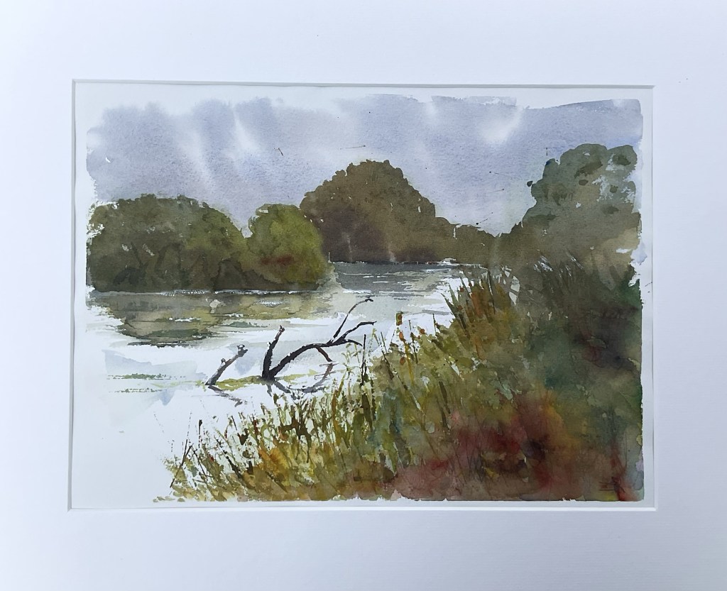 Preparing for an exhibition with Broadstone Art Society starting on 21 October. This is one of my entries. The River Stour at Canford Sang. We also have an exhibition at Poole and East Dorset Art Society next week so I have been doing a lot of framing and mounting lately.