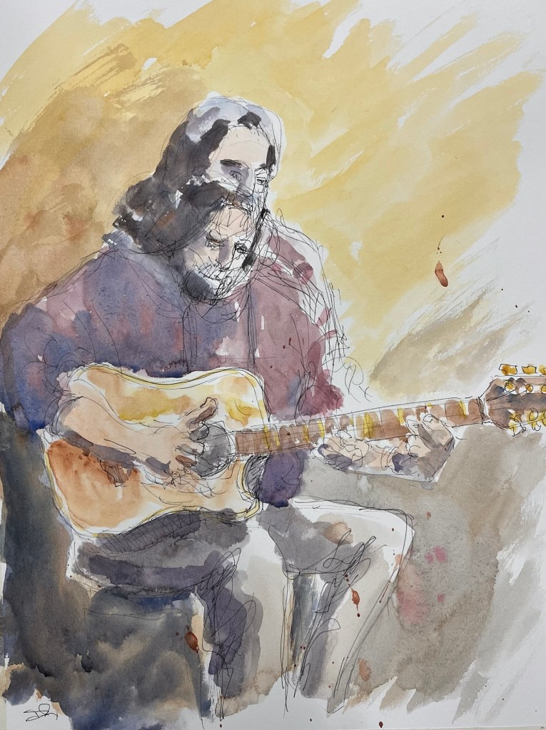 Doug sat and played guitar for us at Broadstone Art Society this morning. I tried to capture some of the movement but he ended up with two heads and three hands. He discover it though so I gave it to him as a thank you for entertaining us.