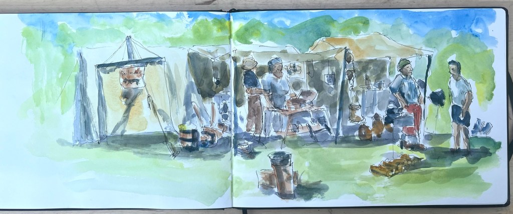 I had a great day at the Chalk valley history festival in Wiltshire today. I had some wonderful conversations with people who were passionate about their chosen period, from the owner of a WW2 gun limber to a member of the Wimborne Militia who showed me the process for firing a wheellock pistol which doesn’t use priming powder so can be fired from horseback. I managed a few quick sketches and would have done more but it was far too hot to sit in the sun for very long.