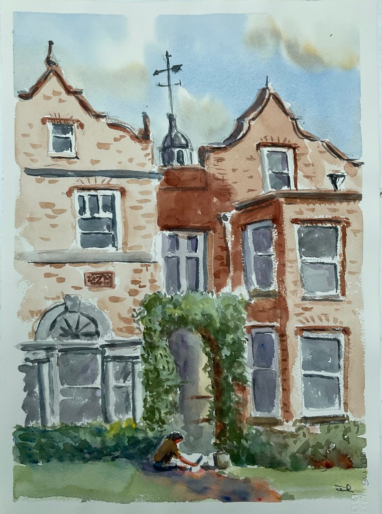 We visited Gaunt’s house near Wimborne with Broadstone Art Society this morning. It turned out to be a lovely morning with over 20 artists painting and sketching.