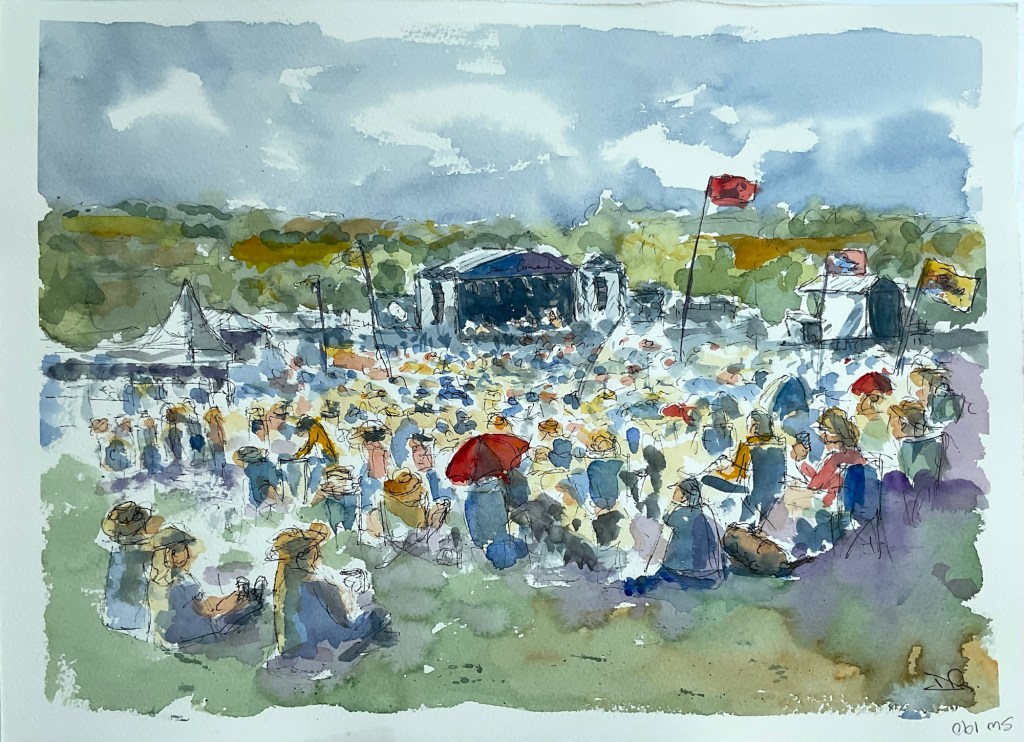 Had a wonderful weekend at Fairport Convention Cropredy Festival. One day of rain, two days of sun and three days of excellent music. Good friends, beer and painting, life doesn’t get much better. Here’s the first of several.