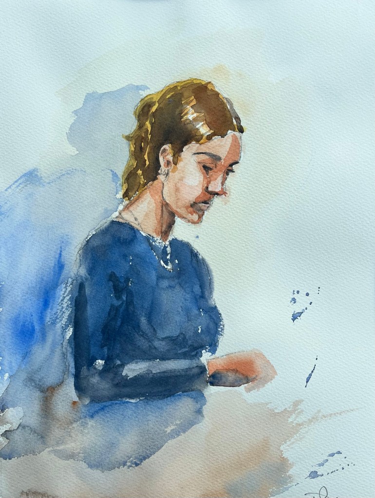 In a couple of weeks time Broadstone Art Society will be back indoors for our winter program. For me that means portraits every week so I thought I would start practicing.. This one is watercolour but I may use oils more often this year.