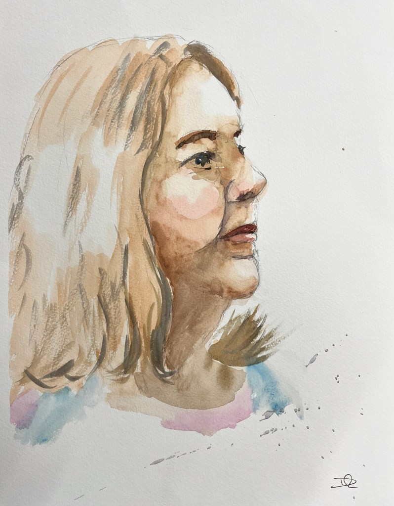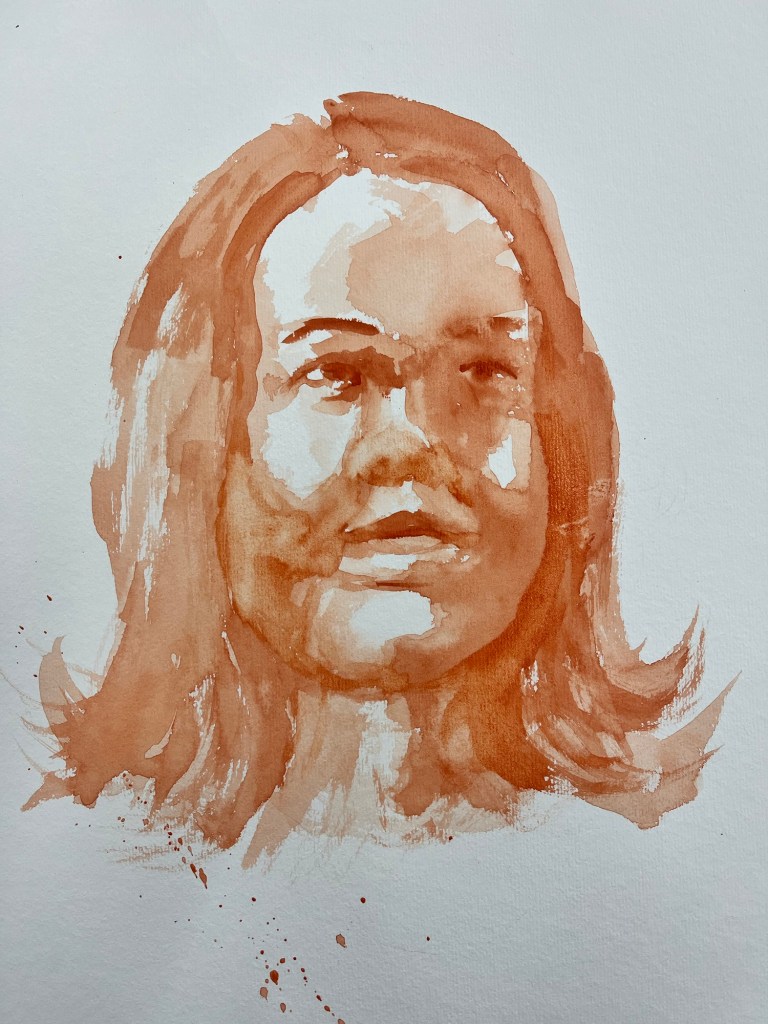 Two portraits of Amanda who sat for us at Broadstone Art Society this morning. I started with a colour portrait using a limited pallet then painted a second using only one colour with no initial drawing. It’s interesting to see how colour is secondary to tone and can easily be a distraction.