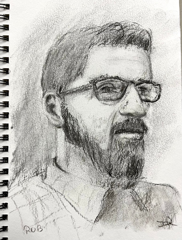 Rob sat for us this morning at Broadstone Art Society. Portrait sessions are getting very popular and there has been some great work produced by members. I did a portrait in charcoal followed by one with charcoal and watercolour.