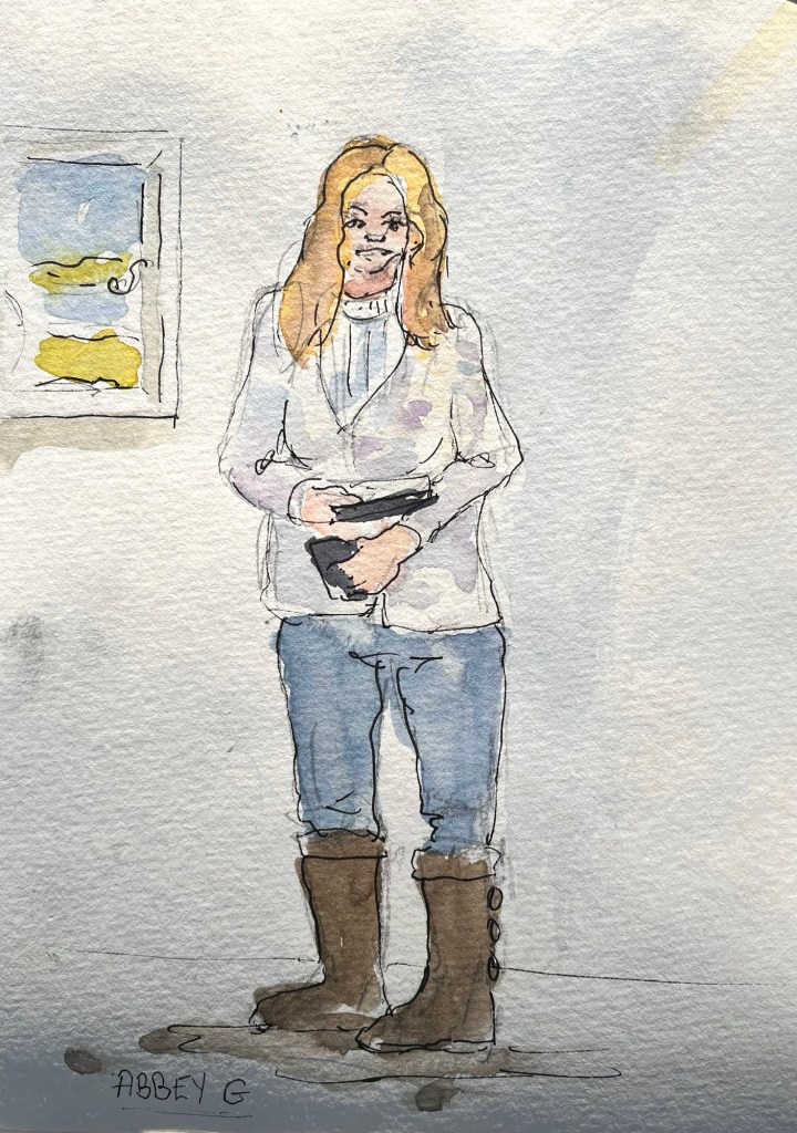 Stewarding at the gallery for the Art in poetry exhibition on Friday where the talented Abbey G read us one of her poems. This quick sketch doesn’t do her justice but it was fun to do.