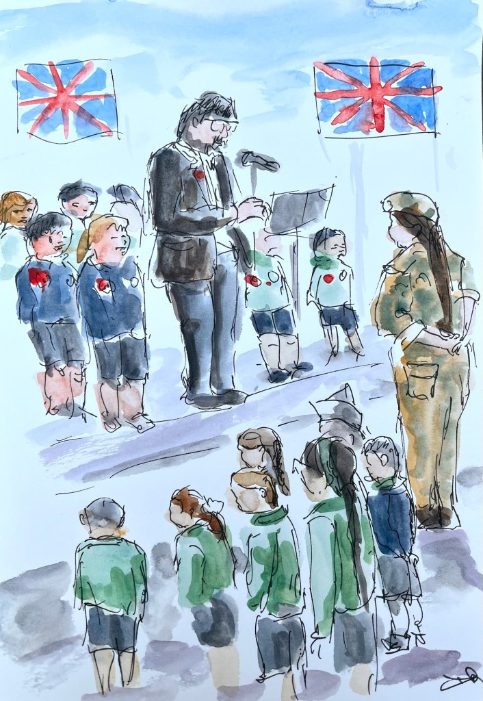 As part of my duties as artist in residence to the Lord Lieutenant of Dorset I attended the VE Day celebrations at a primary school in Dorchester. The children sang and signed popular songs from WW2 and there was a very smart parade from the cadet force. Attended by the Mayor and local MP it was a day the children will remember for a long time.
