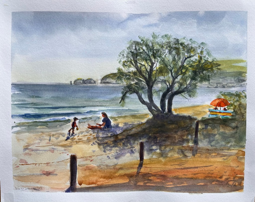 Knoll beach Studland with Poole and East Dorset Art Society this morning. Always one of my favourite places to paint but an easterly breeze kept the temperature down so it wasn’t as pleasant as I had hoped for after yesterday’s hot sunshine. I went for a paddle and my toes went numb! The sea is still really cold.