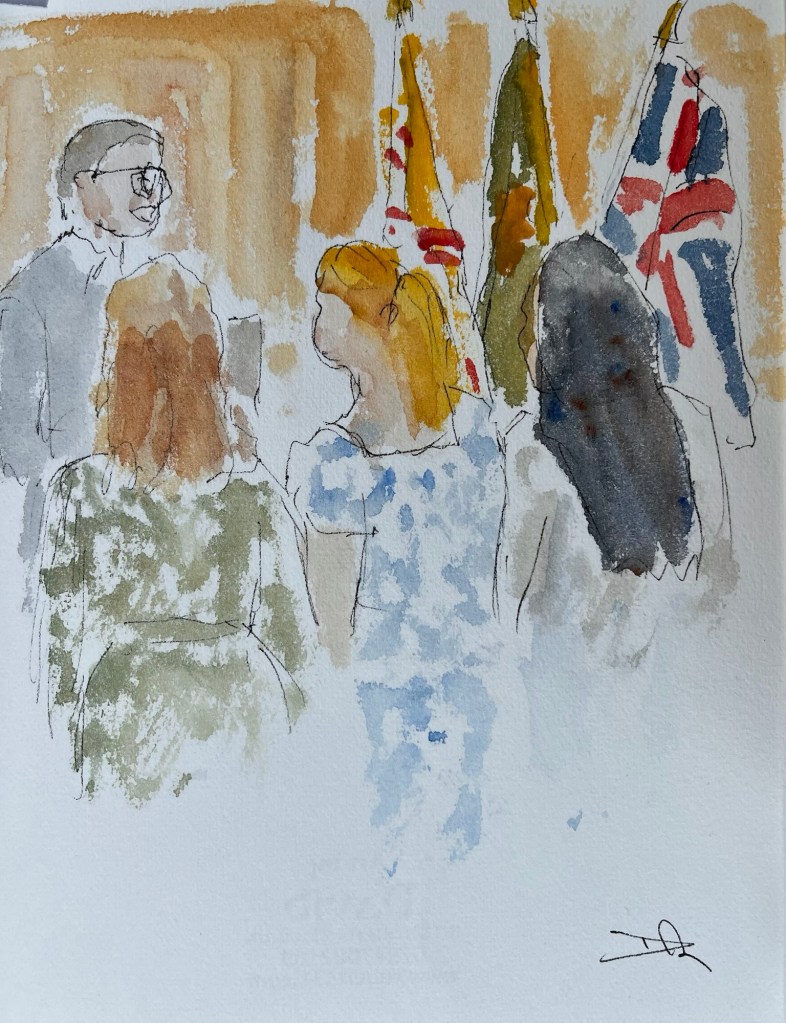 As part of my duties as artist in residence to the Lord Lieutenant of Dorset I was invited to sketch at a citizenship ceremony at Dorchester Civic Centre. It was a joyful ceremony and the registrars couldn’t have been more helpful in putting the participants at their ease and explaining exactly what was happening. It was a fairly short ceremony so I only had time for a couple of sketches.
