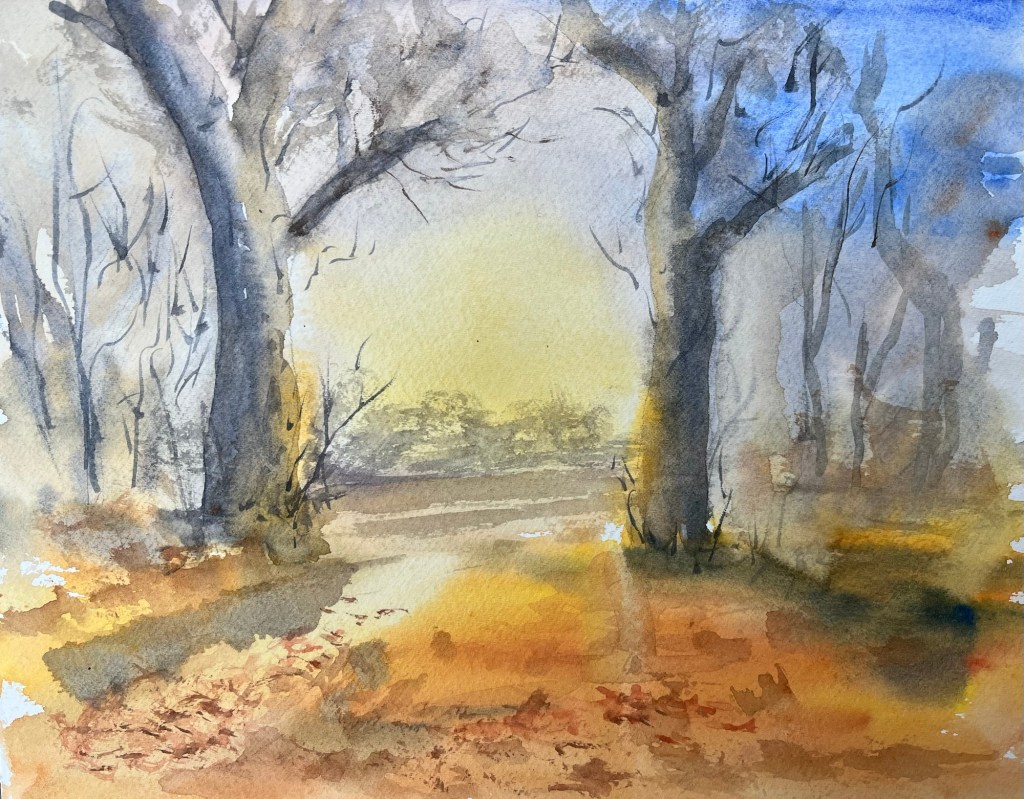 Watercolour was the theme of today’s session at Poole art society. A video demonstration then a chance to do our own painting incorporating some of the techniques from the video. I painted a couple of trees in my sketchbook.