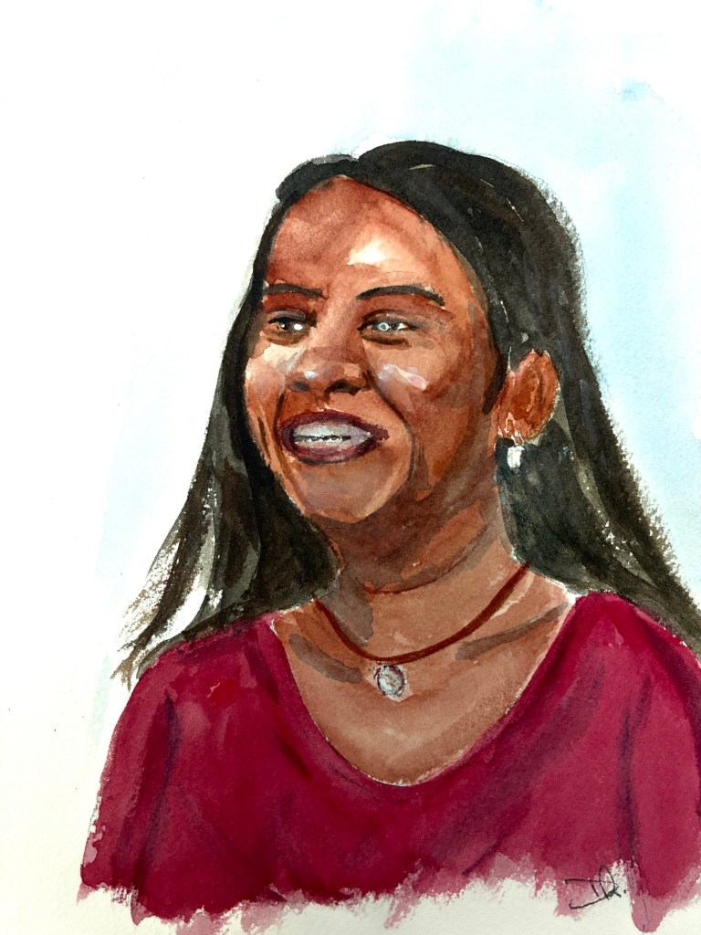 They make great chocolate here in Quito, Ecuador and today we visited an artisan chocolatier where the lovely Amanda told us the whole process and let us taste a variety of flavours. I’m not sure I have done her justice with this portrait from a photo but I enjoyed the process as an alternative to a siesta!