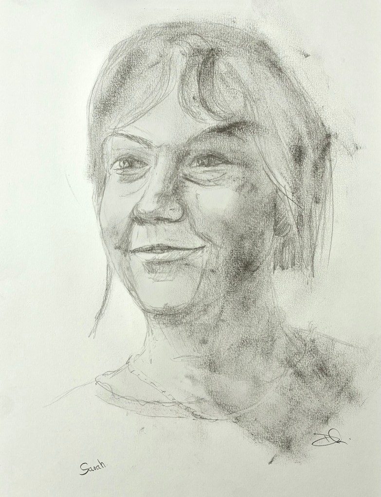 Yesterday at Poole and East Dorset A Society portrait artist Jack Dickson demonstrated how he starts drawing a portrait from life with Sarah modelling for him. We all had a go and with Jack’s guidance members produced some good drawings. This is my attempt plus an overview of members work. Jack is a good teacher and was back with us by popular demand.