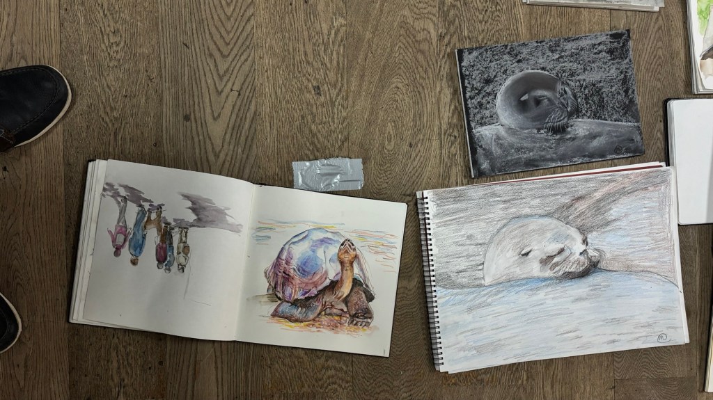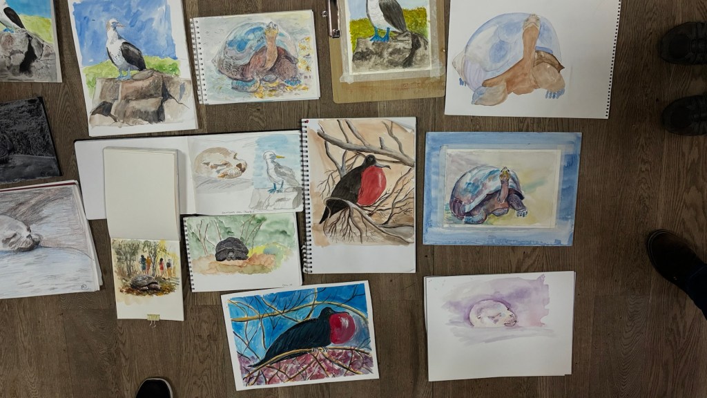 On Wednesday I did a talk about my visit to the Galápagos Islands to Poole and East Dorset Art Society. After the talk everyone did a painting from one of my photographs. The results were amazing as you can see from the photos.