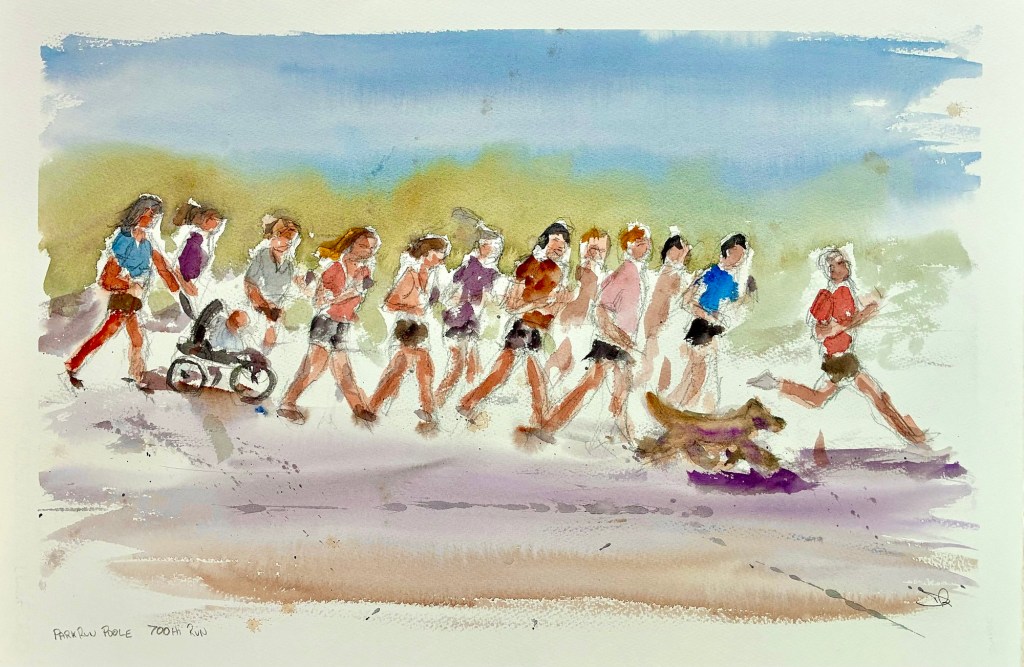 I always enjoy sketching at Park Run Poole, there’s always such a good atmosphere and today was even more special as it was their 700th run, a magnificent achievement. Over 1000 runners and walkers took part so I couldn’t fit them all in!