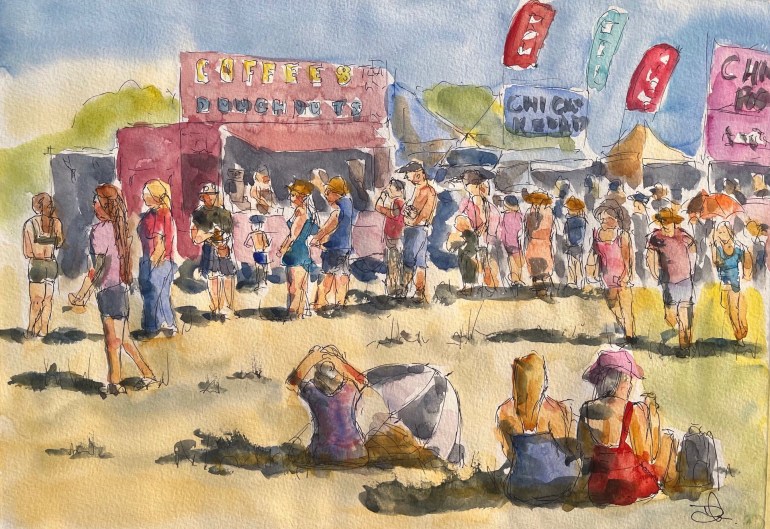 For the last two years I have led workshops in the fringe tent at the New Forest Folk Festival demonstrating to festival goers how they can easily create a visual record of their experiences while listening to great music. I am pleased by the feedback I have received and the sketches festival goers have shared with me following the workshops.